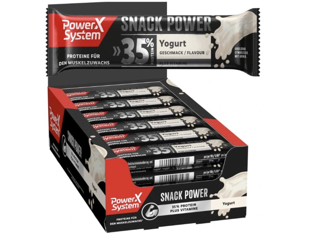 Power System Snack Proteínové tyčinky sú ideálnym proteínovým snackom s 35 % bielkovín na tyčinku, ktorý je skvelý na cesty alebo medzi jedlami.